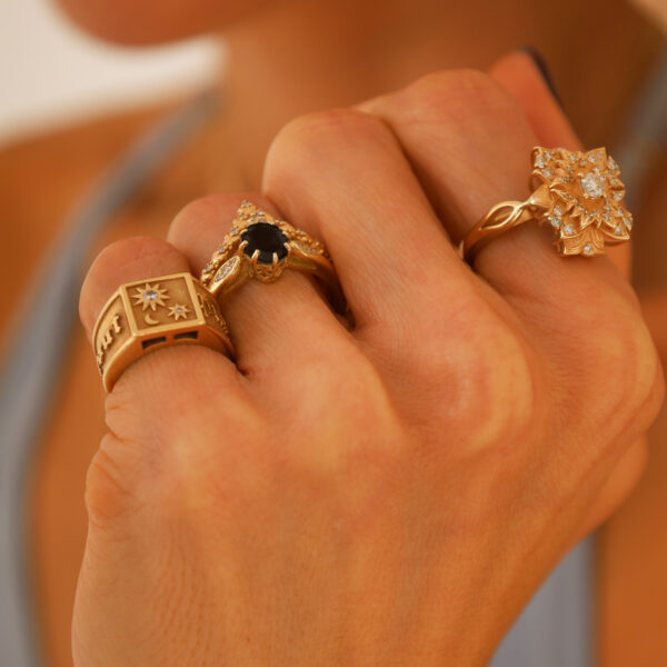 הטבעת תתאים לכל אצבע, מזרת למראה בועט ומלא סטייל, דרך הקמיצה למראה קלאסי מדוייק ועד האמה והאצבע למראה נוכח ועוצמתי.