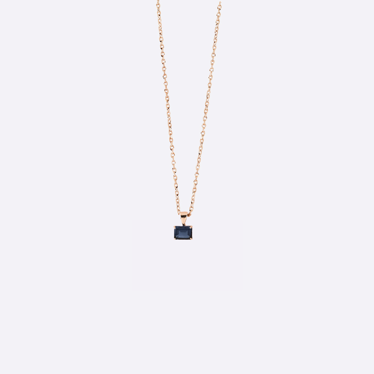 A rectangular, elegant, and timeless necklace, featuring a central gemstone set in a raised, intricately detailed bezel. The stone’s setting is adorned with a delicate criss-cross motif, adding a unique vintage charm while enhancing the gemstone’s depth and elegance.