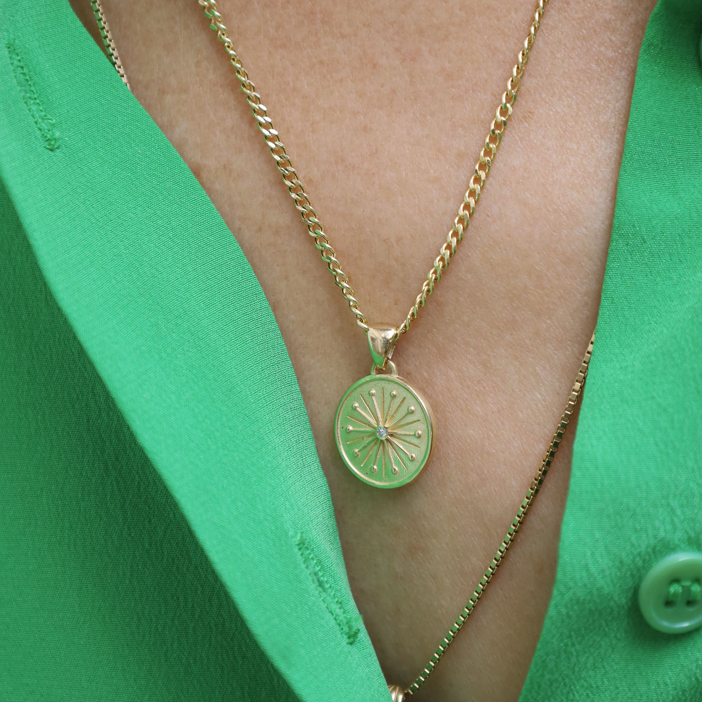 שרשרת בעלת תליון מטבע עגול, בעל שני צדדים