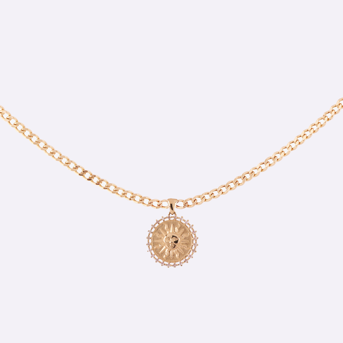 A double-sided pendant featuring the sun and the moon—on one side, a radiant sun, and on the other, a glowing moon.